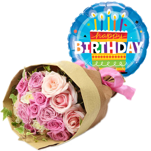Send your dearest one all your love, even while being away from him. Choose this wonderful combo consisting of a gorgeous bunch of 15 peach mixed roses with 1pcs happy birthday Mini Mylar Balloon
