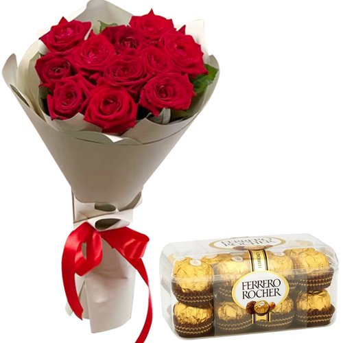 12 Pieces Red Rose Bouquet with 16 Pieces Ferrero Rocher Chocolate