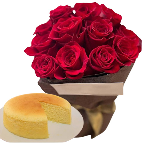 12 Red Roses Bouquet with Baked Cheese Cake