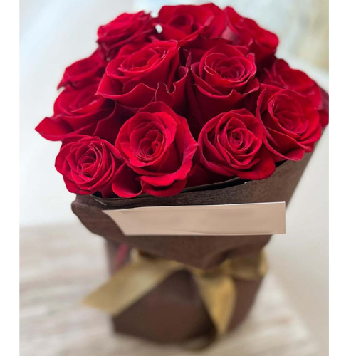 Classic bouquet of 12 fresh red roses, beautifully wrapped to express deep love and passion.