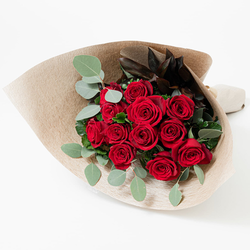 12 stalks of red roses in a Bouquet