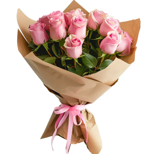 12 Stalks Pink Roses in a Beautiful Bouquet