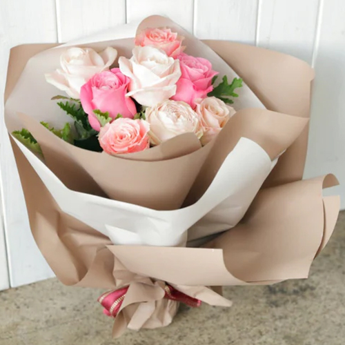 A soft blend of 8 white and pink roses arranged in a charming bouquet. A graceful floral gift that brings warmth, kindness, and beauty to any occasion.